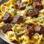 Garlic Steak Tortellini brings together tender slices of seared steak, pillowy cheese-filled tortellini, and a rich garlic cream sauce that clings to every bite. It is the kind of dinner …