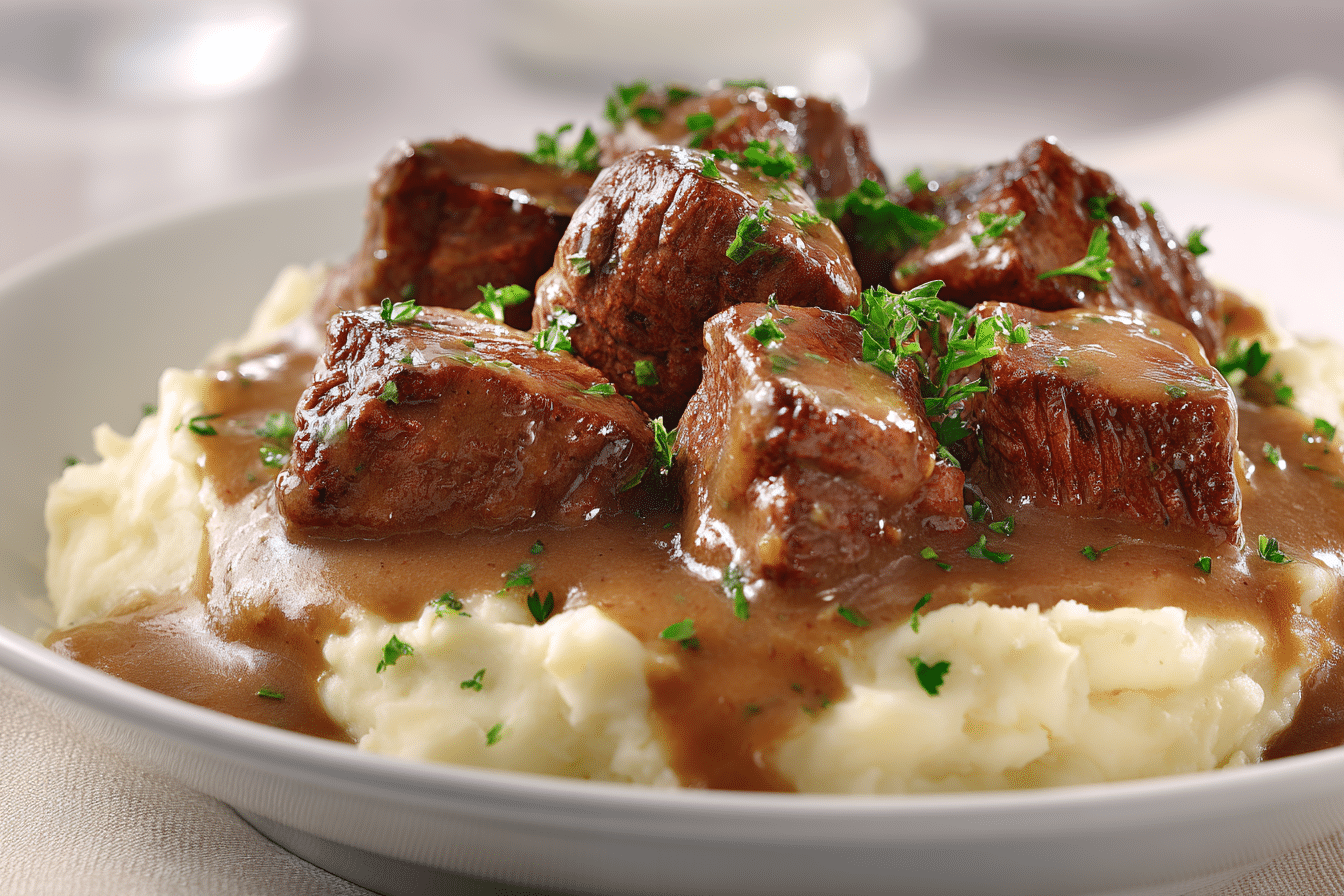 Unlike slow-cooked versions that take hours, this stovetop method delivers beautifully tender beef tips in about 30 minutes. With the right cut of meat and careful heat control, the gravy develops a deep, savory flavor that tastes like it came straight from a restaurant kitchen.