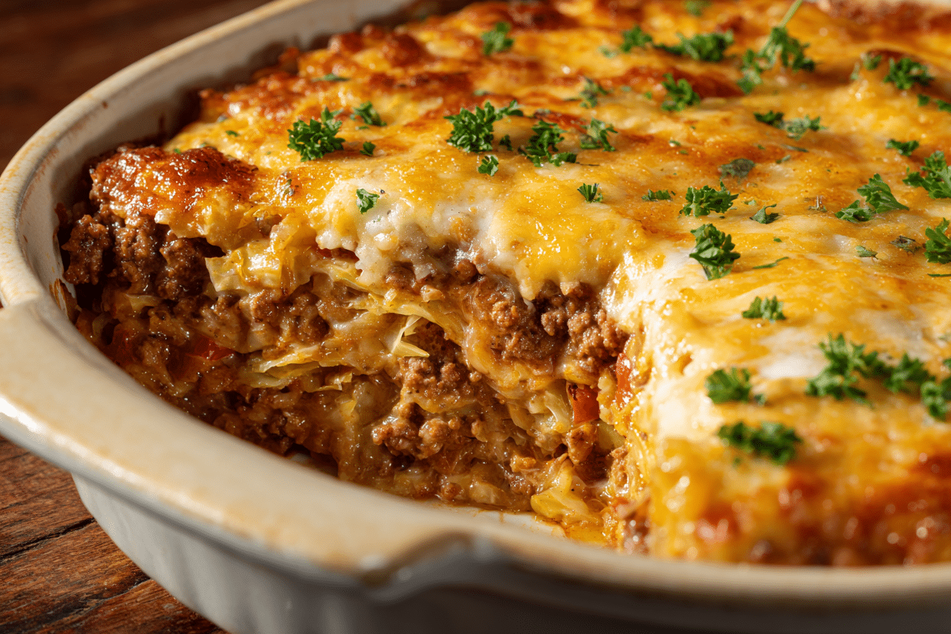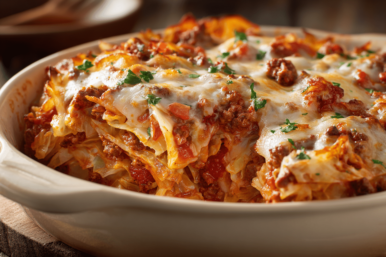 A cozy, cheesy, and hearty cabbage casserole made with layers of tender cabbage, savory meat sauce, and melted cheese. Perfect for family dinners or meal prep.