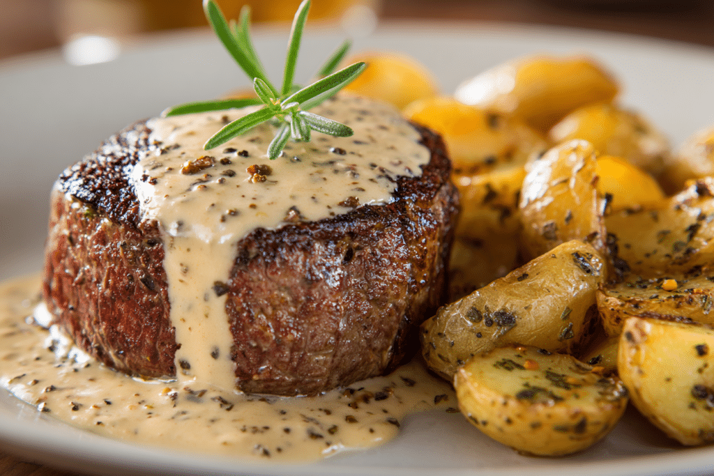Filet Mignon with Creamy Peppercorn Sauce is a timeless steakhouse classic — tender, buttery filet seared to perfection and finished with a velvety pan sauce rich with cream, brandy, and …
