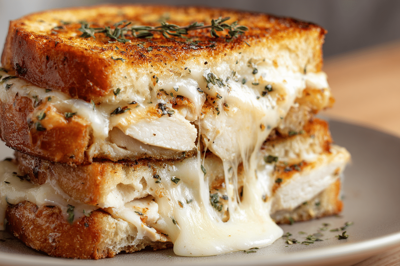 Perfect for a satisfying lunch, casual dinner, or indulgent weekend snack, this sandwich combines the best parts of a garlic bread grilled cheese and a hearty chicken melt. And the best part? It comes together in under 30 minutes with simple, pantry-friendly ingredients.
