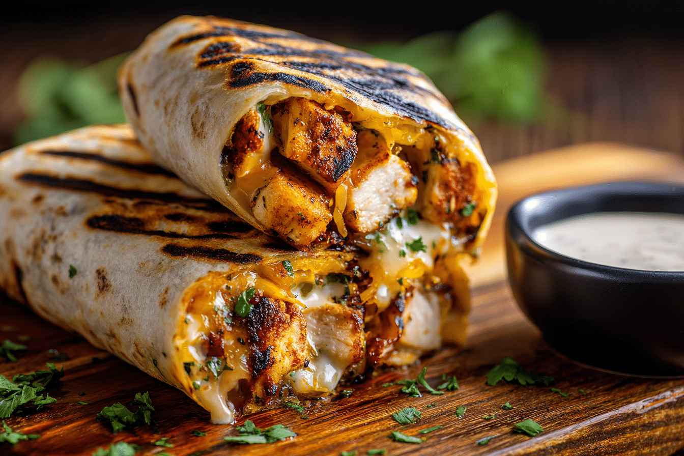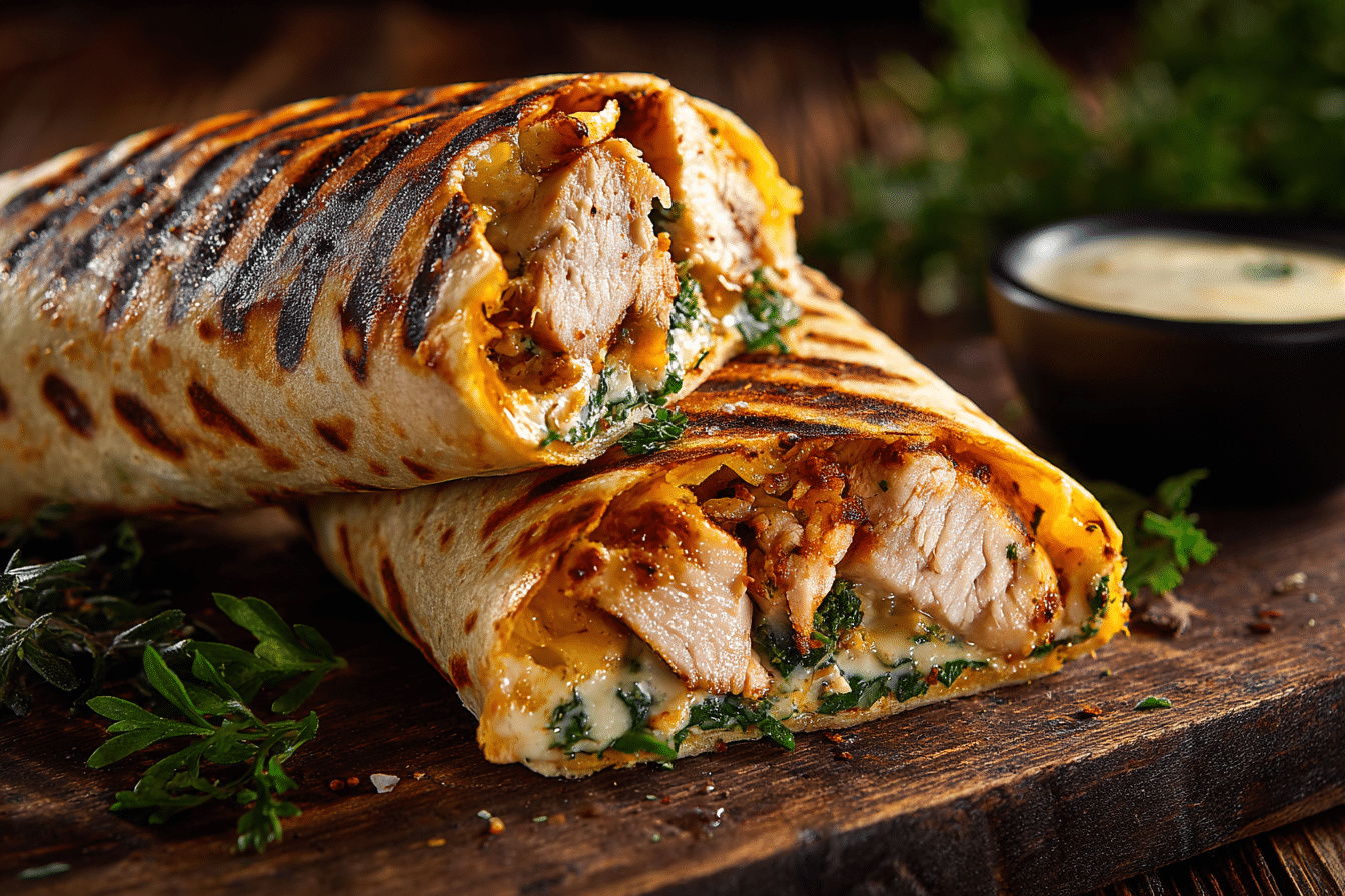 Cheesy Garlic Chicken Wraps are filled with juicy garlic-seasoned chicken and melty cheese, wrapped in a golden, toasted tortilla brushed with garlic butter. Ready in under 30 minutes.
