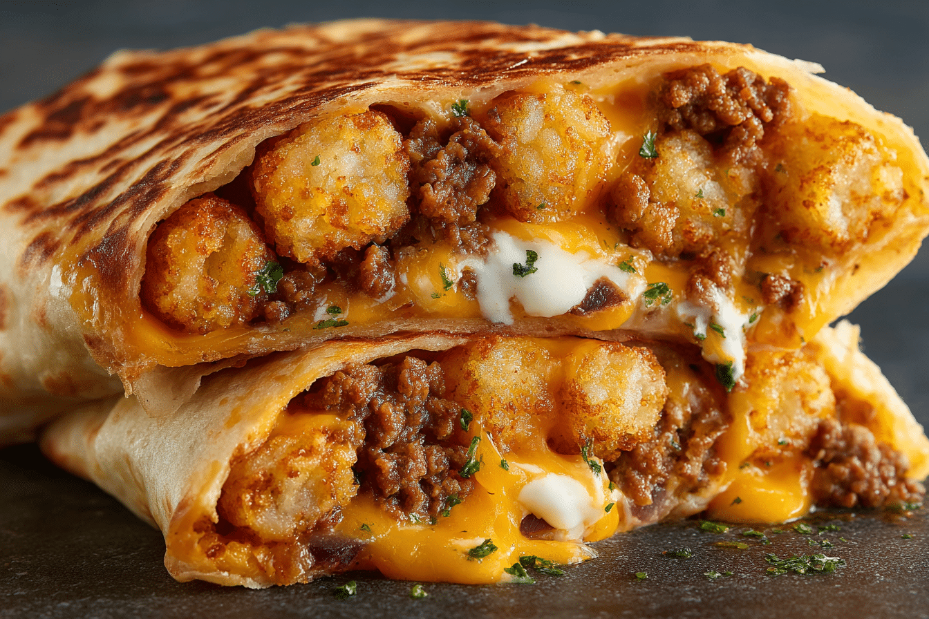 Cheesy Potato Burritos with Crispy Tater Tots are simple to prepare yet layered with texture, making them perfect for busy mornings or relaxed weekend cooking.