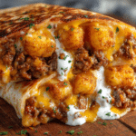 Cheesy Potato Burritos with Crispy Tater Tots combine crunchy, golden potatoes with melty cheese and warm tortillas for a hearty, satisfying meal that feels both playful and deeply comforting. Each bite offers contrast: crisp tater tots, creamy cheese, soft scrambled eggs or seasoned beans, and a lightly toasted tortilla wrapped snugly around it all.
