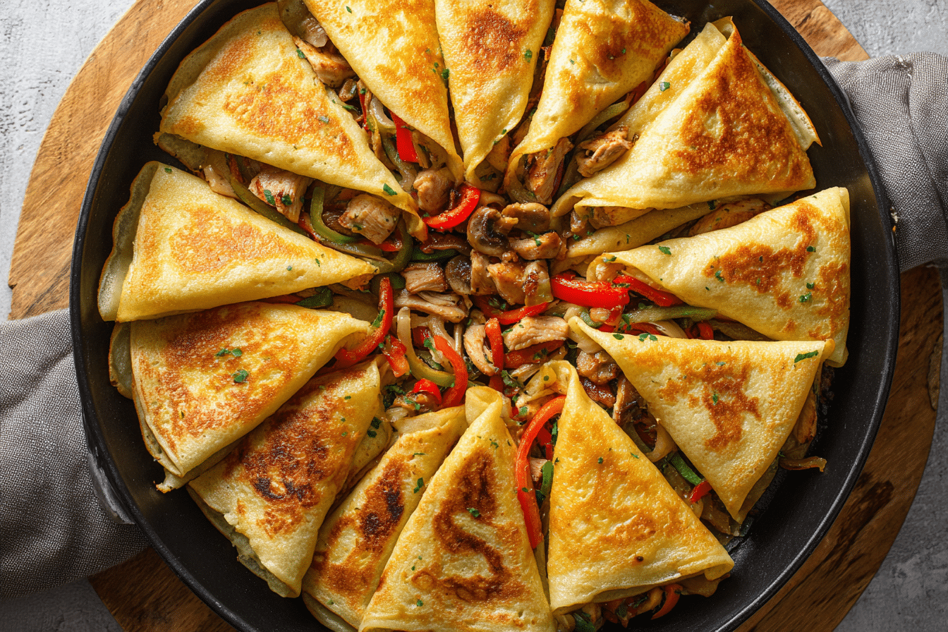 Chicken Crepes Shawarma is a delicious fusion of Middle Eastern flavor and French technique—where spiced, juicy shawarma-style chicken meets soft, golden crepes. It’s like wrapping your favorite street food in a delicate, buttery blanket.