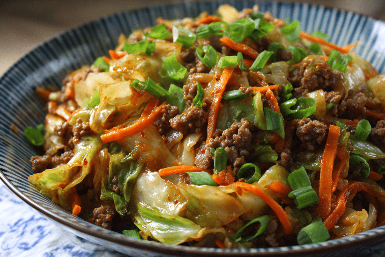 This Chinese Ground Beef and Cabbage Stir-Fry is a fast, savory one-pan dish with bold flavor, tender beef, and crispy cabbage — perfect for weeknight dinners or meal prep.