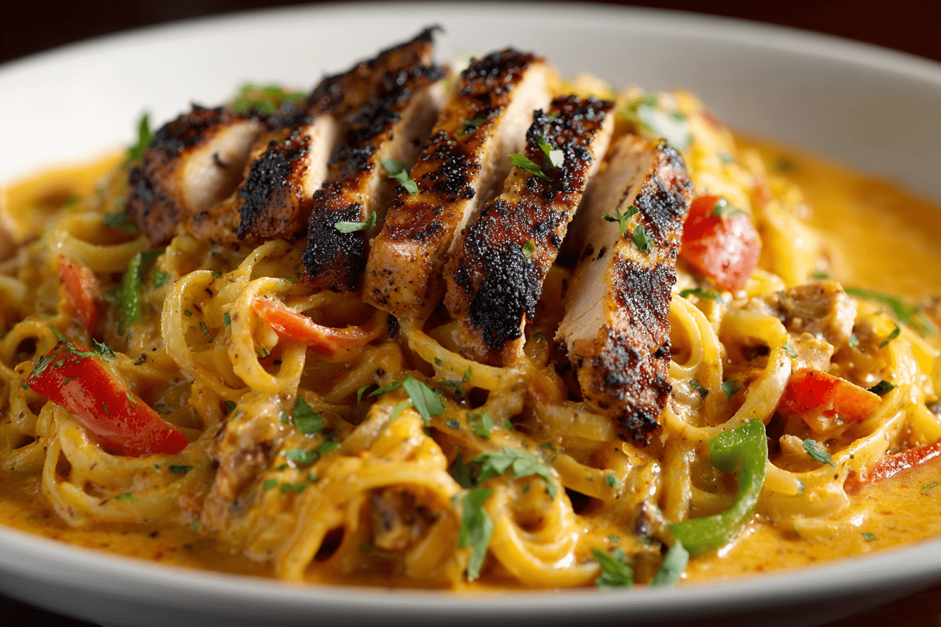 Creamy Cajun Chicken Pasta features tender chicken coated in smoky spices, tossed with bell peppers and pasta in a rich garlic-parmesan cream sauce. A bold, comforting dish with a Southern twist.
