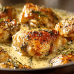 Chicken thighs are the star here: naturally juicy, forgiving to cook, and full of flavor. They’re seared until golden, nestled in a velvety cream sauce infused with garlic, herbs, and Parmesan, and then baked to perfection. The result? A hearty, comforting dish that tastes like it took hours, but comes together easily in under an hour.