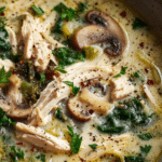 This Creamy Rotisserie Chicken Mushroom Soup is a soul-warming, satisfying bowl of comfort — rich with tender chicken, earthy mushrooms, and a silky, herb-infused broth. Using shredded rotisserie chicken keeps things simple, while the combination of garlic, thyme, and a touch of cream delivers restaurant-style flavor in every spoonful.