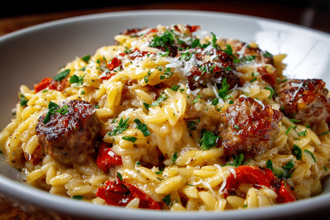 Creamy Tomato Sausage Orzo – A One-Pan Comfort Dish