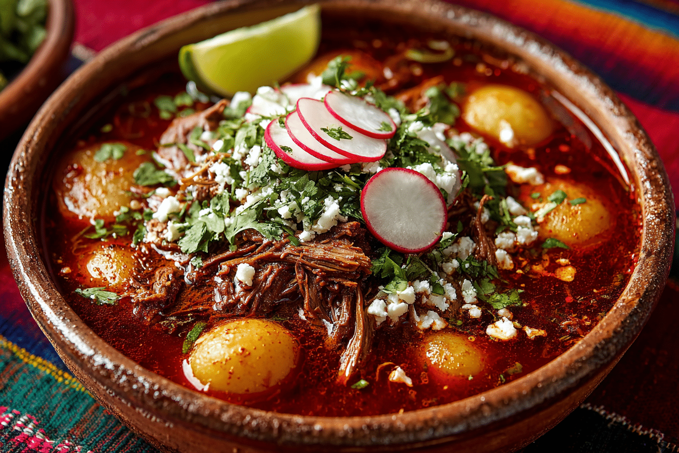 Rooted in centuries-old indigenous and colonial culinary traditions, Pozole (from the Nahuatl word “pozolli”) is more than just soup — it’s a celebration dish often served during holidays, fiestas, and family gatherings. The vibrant red hue comes from dried guajillo and ancho chiles, which lend earthy, smoky depth without overwhelming heat.