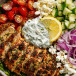 Greek Chicken Bowls are a vibrant, nourishing, and flavor-packed meal that brings the sunny taste of the Mediterranean right to your kitchen. Inspired by traditional Greek ingredients — think juicy grilled chicken, tangy tzatziki, briny feta, and crisp vegetables — these bowls are a complete and satisfying way to eat clean without sacrificing flavor.