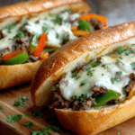 Inspired by the iconic Philadelphia street food, this recipe swaps thin-sliced steak for seasoned ground beef, making it a budget-friendly and weeknight-appropriate meal that’s ready in under 30 minutes. It’s cozy, hearty, and layered with flavor — from caramelized veggies to gooey cheese and toasted rolls. Ideal for game day, dinner parties, or even meal prep, it’s a modern twist on a timeless sandwich.