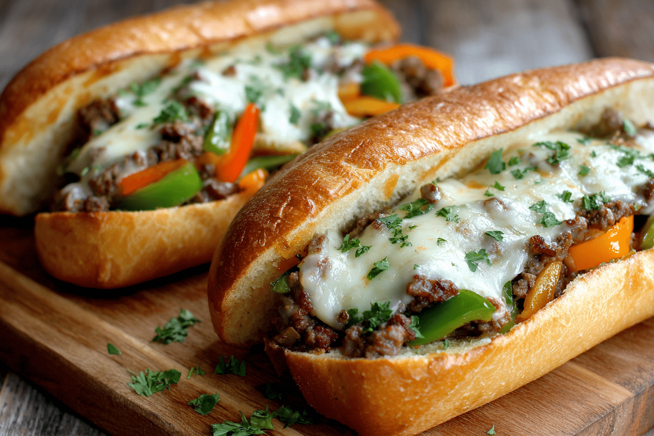 Inspired by the iconic Philadelphia street food, this recipe swaps thin-sliced steak for seasoned ground beef, making it a budget-friendly and weeknight-appropriate meal that’s ready in under 30 minutes. It’s cozy, hearty, and layered with flavor — from caramelized veggies to gooey cheese and toasted rolls. Ideal for game day, dinner parties, or even meal prep, it’s a modern twist on a timeless sandwich.