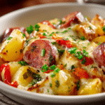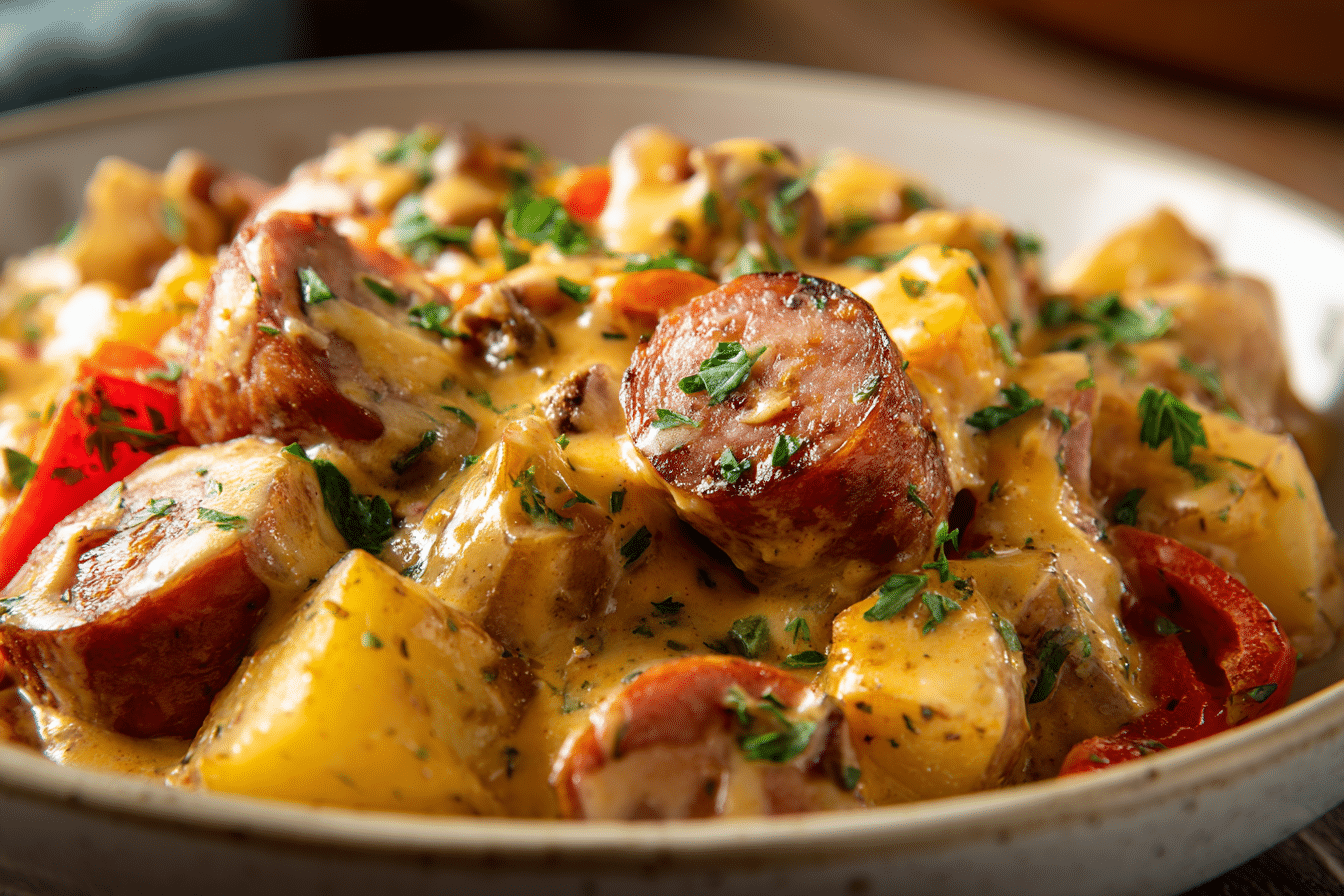 A hearty, comforting casserole made with smoky kielbasa sausage, tender potatoes, and layers of creamy, cheesy goodness — baked until bubbly and golden.