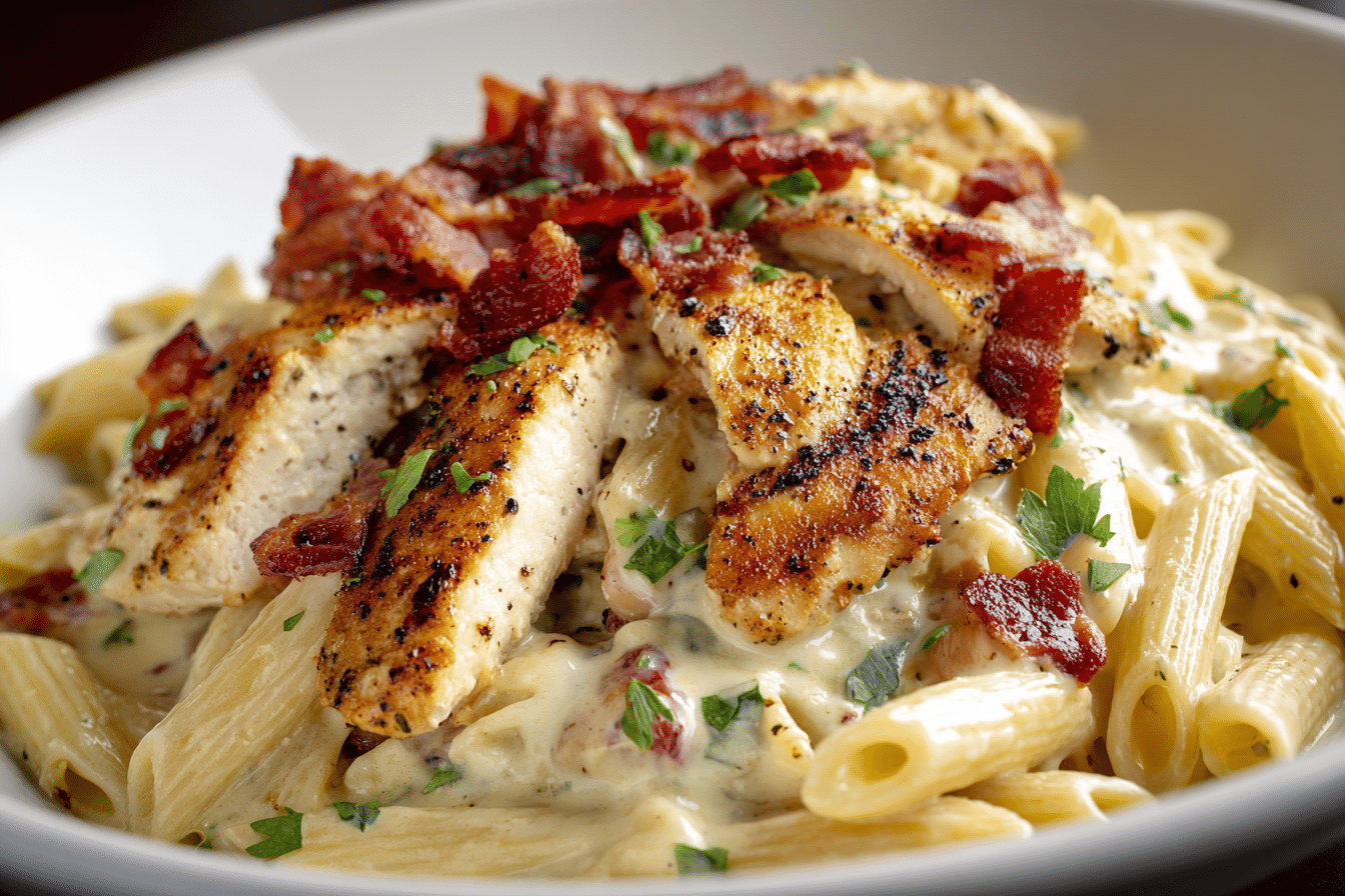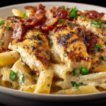 It features juicy pan-seared chicken in a luscious garlic cream sauce with sun-dried tomatoes, Parmesan, and herbs — all swirled together with pasta to create a silky, restaurant-worthy dish that comes together in under 40 minutes. Whether you’re cooking for date night, family dinner, or just yourself, this dish is always a stunning success.