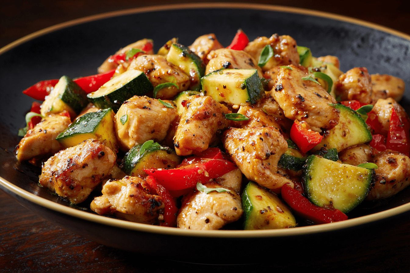 This quick chicken zucchini stir fry is a fast, flavorful dish made with lean chicken breast, crisp zucchini, and a savory garlic-ginger sauce. Ready in under 30 minutes.