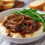 When the air turns crisp and you’re craving something hearty, rich, and deeply comforting, this Savory Crock Pot French Onion Pot Roast is exactly what your dinner table needs. Inspired by the classic French onion soup, this slow-cooked pot roast is infused with caramelized onions, garlic, beef broth, and melted cheese — transforming a traditional roast into an ultra-cozy, fork-tender meal.