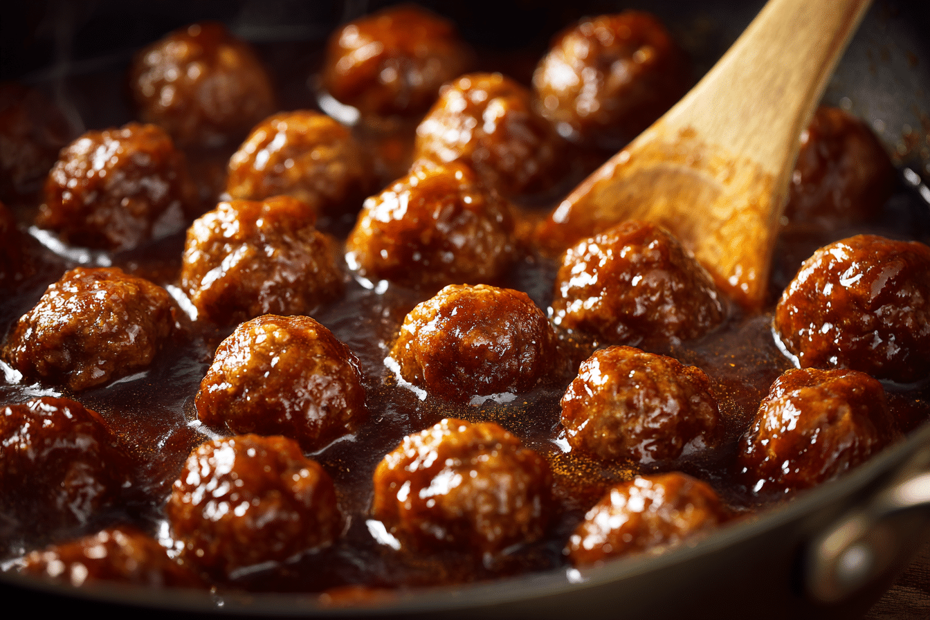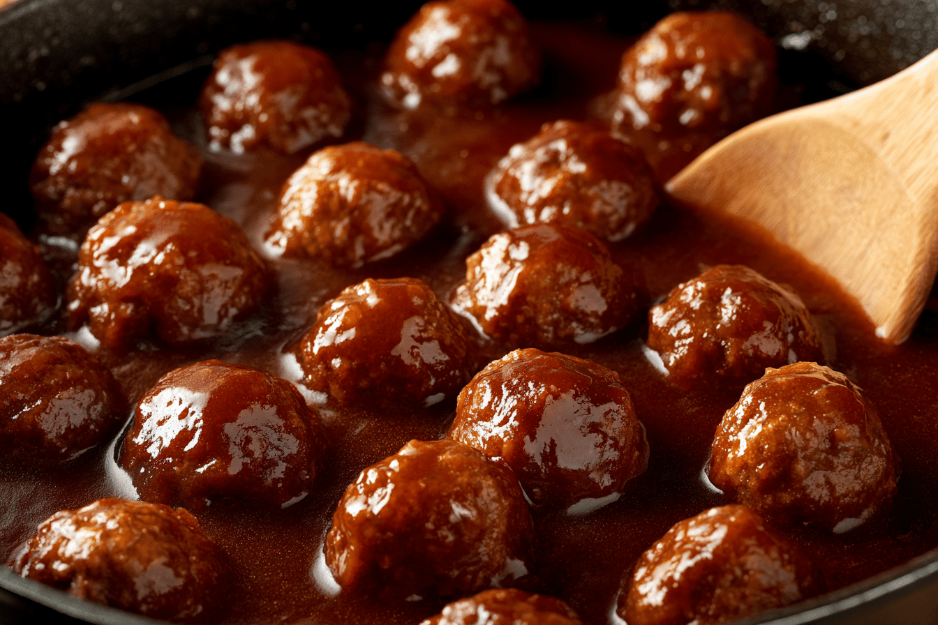 Optional: Brown meatballs in a skillet for 2–3 minutes per side to deepen flavor and help them hold shape. Or place directly into the slow cooker.