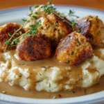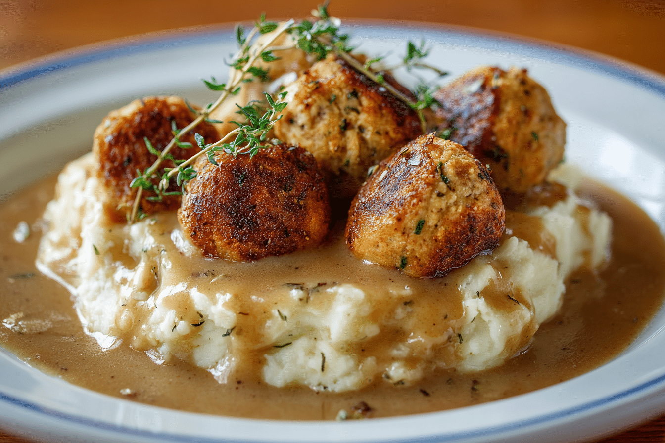 Savory stuffing balls made with turkey, herbs, and bread — crispy on the outside and tender inside. A perfect holiday side, appetizer, or meal prep snack.